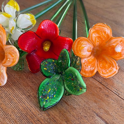 Farget glass blomsteroppsats med original innmat RETRO
