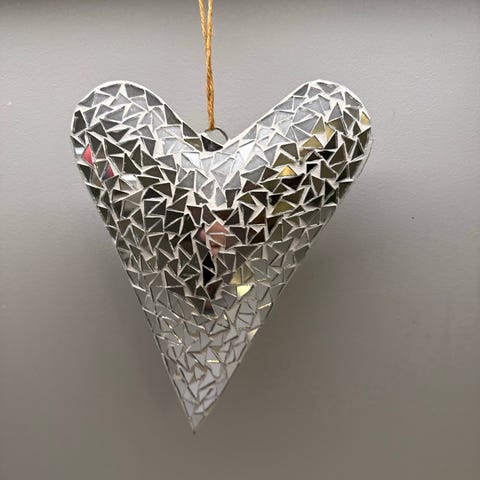 2 stk telysholdere i metall formet som hjerte, med oppheng til å henge i vindu eller tak. Luke på den ene side for å sette inn telys.