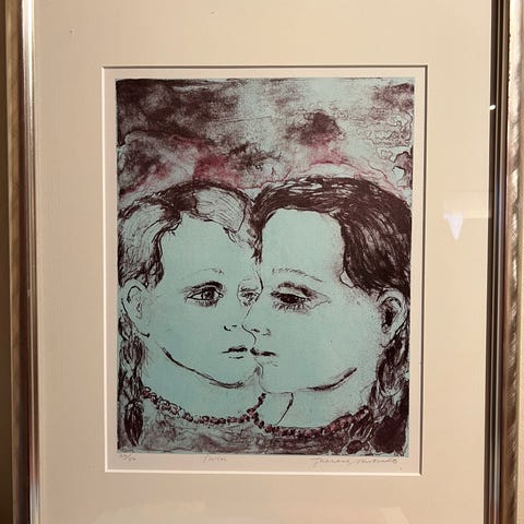 Jens Mathisen, norsk billedkunstner. Signert litografi. 38 X 32 innrammet.