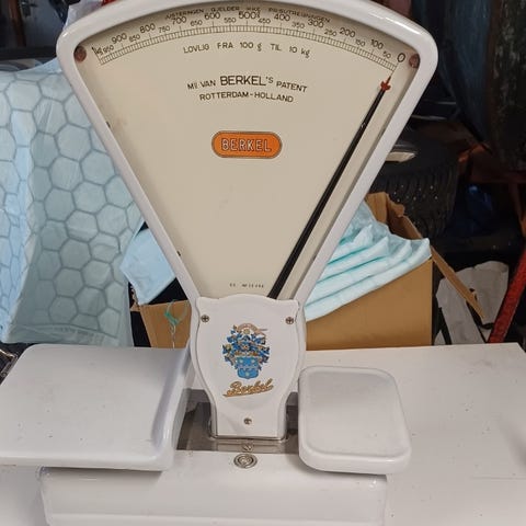 Tøff, tung og gammel industrivekt på hjul trenger ny eier. Vekten er helt i orden og fungerer som den skal. Brukt til å veie epler. Selges grunnet plassmangel.