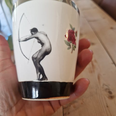 Selger 9 stk Lea krus med forskjellig motiv og tekst. Se bilder.
