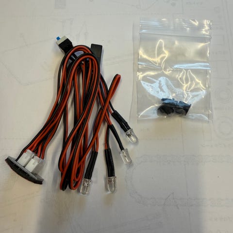 Kabler 25 cm med svart til Jord, svart/hvit til P-lys og rød til Bremselys.