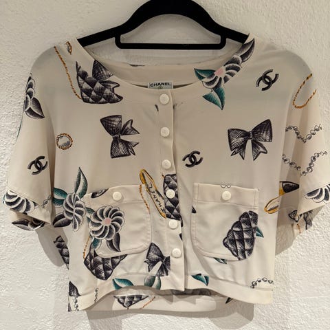 Svært pent brukt vintage Chanel skjorte i fransk str. 42, som tilsvarer ca. str. 36. Ingen slitasje eller hull. Laget av silke, i en skimrende lakserosa farge. Den er veldig skrukkete på bildet! Gi meg gjerne et bud!