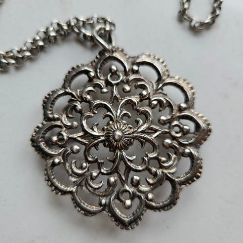 Ny pris antikk vintage filigran anheng i sølv 830S halskjede