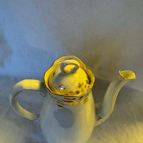 Diverse deler "Gullkløver" fra Porsgrund Porselen selges til følgende priser: DE TO LIKE KOPPENE ER SOLGT. ASJETTENE ER SOLGT: