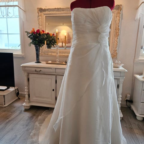 Underskjørt/spileskjørt kan medfølge om ønskelig, jeg brukte underskjørt for å få litt ekstra volum på skjørtet. Fantastiske blonder og lekkert slep.