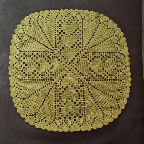 Duk heklet i bomull/akrylgarn.