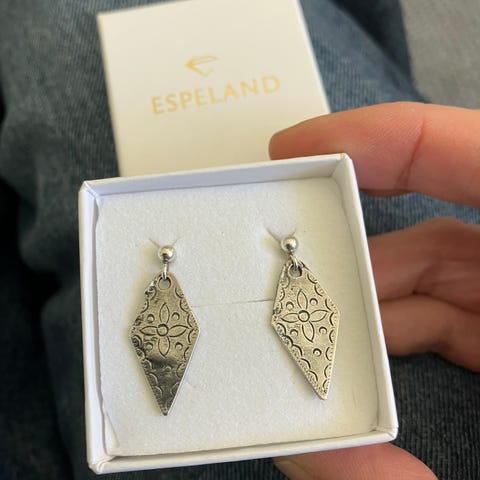Flott øredobber i sølv. Med papegøye motiv pris 700 kr.