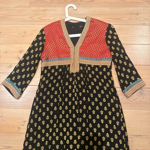 Svart Indisk/pakistansk tunika/kurtha/topp: bluse i chenille og jersey- ny