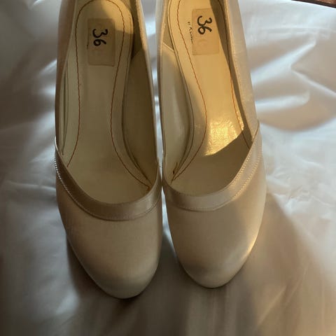 Pene brudesko fra Rainbow Club modell Bibi i str 36/ uk 3. Farge Ivory Satin.