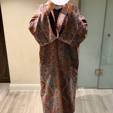 Den er helt ubrukt med merkelappen på. Kjøpt for ca 5 år siden for rundt 2000 kr. Laget av viskose. Størrelse S.