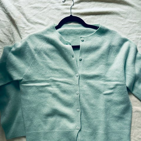 Pen cardigan fra Jackpot by Carli Gry. Size 2/M. Colour: Mint. Fargeavvik forekommer på bilder. 50% lambswool, 40% angora, 10% nylon. Pene blanke knapper. Røyk- og dyrefritt. Kjøpt 2000’s. Høy nypris. Kvalitet. Som ny. Selger kr.1.200,-. Pris er satt.