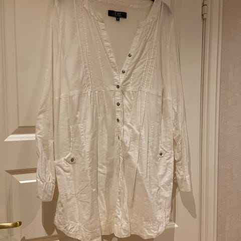 Selger en nydelig hvit kjole fra Filippa K i størrelse M. Den har et elegant og minimalistisk design med knapper foran og 3/4-ermer. Mykt og lett stoff som faller pent og er behagelig å ha på. Perfekt til både hverdags og mer pyntede anledninger.
