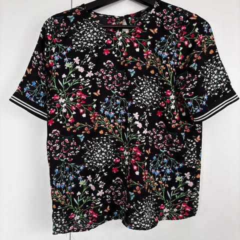 Lite brukt, uten skader og bruksmerker. Peplum topp i 100% silke fra Stella McCartney, selges kr 600,-