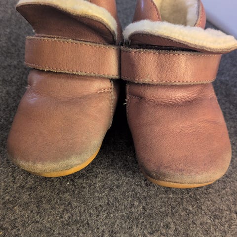 Barnetøfler Str. 24. i Elgskinn med ullfor.