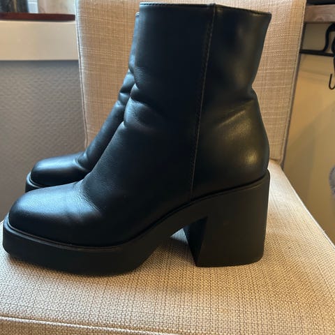Lekre støvler - kun brukt inne i størrelse 37, men store i størrelsen. Glidelås på siden og pyntesnøring foran.