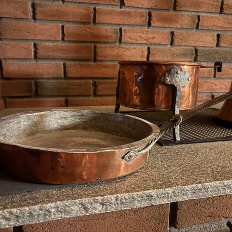 Denne er i god stand med flere bruksmerker og en fantastisk patina, den er laget av et tungt tre, hvilken type er jeg usikker på (en type edeltre) pga tyngden, ca 30/40 kg skulle jeg tro.