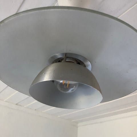 Stor taklampe av merket «Verona». Lampen er en designklassiker fra 1960-tallet, designet av danske Svend Middelboe. Lampen er pent brukt, men noe forsjell på de. Diameter: 75 cm Høyde: 45 cm. Har 7 stk om flere ønskes. Pris pr stk. Ved kjøp av flere kan pris diskuteres.