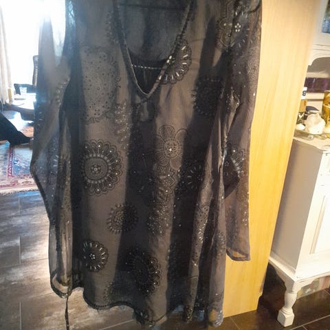 Rysjer på skjørtdelen. Mykt, lett stoff.