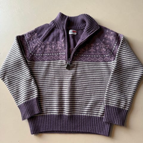 Pent brukt av enebarn og kun vasket på ullprogram m ullvaskemiddel. Ingen nupper, flekker eller hull og fremstår veldig fin.