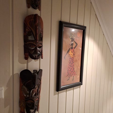 Ellers er det priser under bilder. Cupcake bilde selges 30. Metallskiltene selges 50perstk. Kjøp alle og få ett av de gratis. De er 20x30cm store. Det største bildet med to mennesker på i abstrakt kunst selges 250. Litt skade på ene hjørnetpå rammen, men er teipet og synes ikke. Se bilde. Dette er 83x63cm. Det siste flotte bilde med glassramme rundt er med lys over brua. Er en liten skade i høyre hjørne nede,se bilde. Selges 150. Kan sendes om du betaler frakt selv. Pris under bilder. Spør om du lurer på noe. På kvelder og I helg er jeg å nå på 90149371