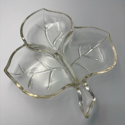 Kraftig glassfat med grønn/blå bunnfarge og bobler /70-tallet