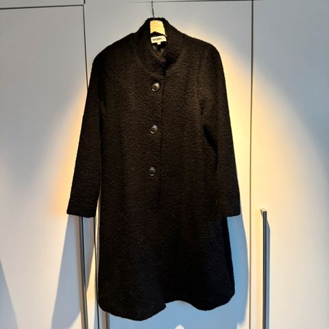 Mørke blå ullkåpe uten ermer, fin utenpå en ullgenser, eller en annen jakke. Elegant, deilig og varm. Aldri brukt. Det står S men passer M også.