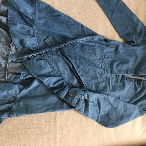 Nydelig dongerikjole med knepping bak, nesten ikke brukt str 128