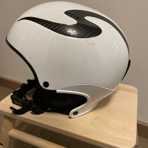 Pent brukt skihjelm i str S/M, vekt 450g, passer barn/ungdom. Skallet er laget av karbonforsterket polymer. Veldig god og sikker hjelm. Kostet ny godt over 3000kr. Kan sendes, frakt kommer i tillegg.