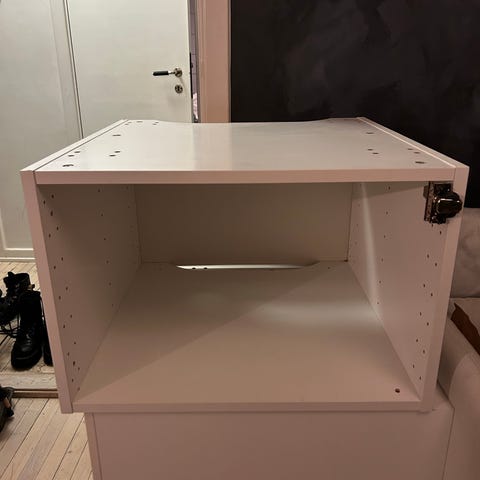 Heltreskap til mikrobølgeovn. Overskapet til venstre på bildet. Kan sikkert også fint benyttes til noe annet enn mikrobølgeovn.