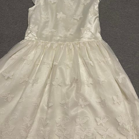 Nede på høyre arm er det en liten flekk, ellers fremstår den som helt ny. Den er brukt i selskap 1 gang. God kvalitet fra Couture Princess!