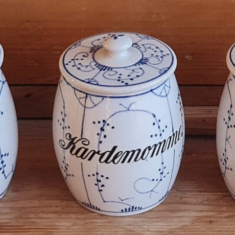 Krydder krukker. Muscat. Kanel.