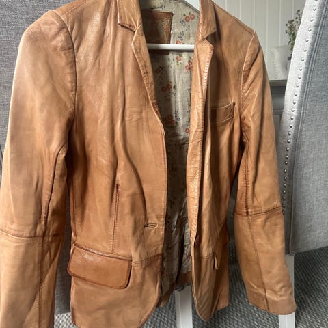 Fantastisk håndsydd Skinnjakke i Khaki/Grønn farge ✨