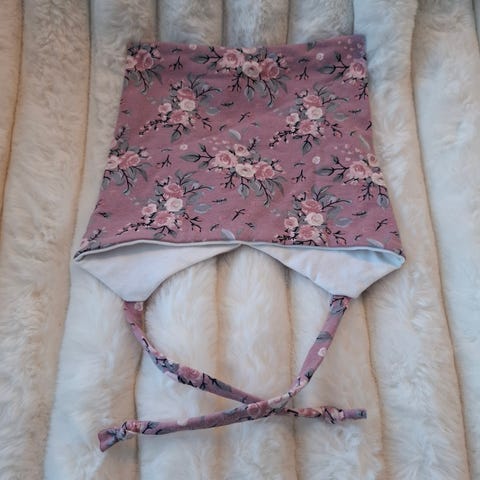 Ny og ubrukt hjemmesydd lue i str. 4-12 mnd. Sydd i dobbel organic bomullsjersey med god stretch og fin passform som sitter godt rundt ørene 🥰