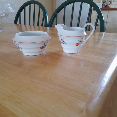 2 skåler kan brukes til syltetøy/sukker eller hva som helst og 1 fløte mugge og ett lite fat.