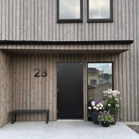 Kledning er ferdig behandlet og kan monteres med en gang.