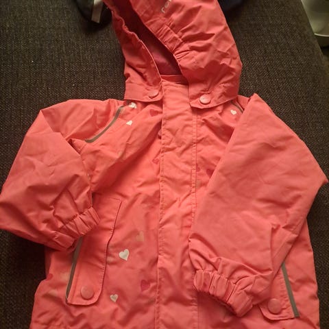Nesten ubrukt overgangsjakke selges. Hel og pen, en liten flekk. Se bilde. Str.134.