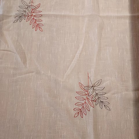 Vintage gardinhøyde/duk/stoff, i gult og rødt med innvevd tulipanmønster, samt blå striper. Løpegang oppe og nede.