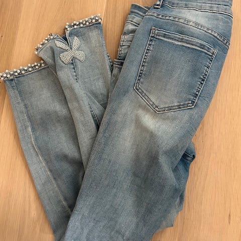 Jeans med litt sleng, med brodering ( litt bling) str 42.Lite brukt. Kjøper betaler frakt kr 50.
