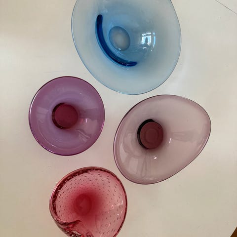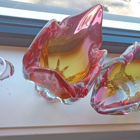 Moderne glasskunst fat fra Willy Johansson, Hadeland Glassverk.