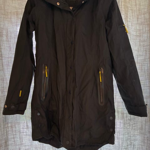 Allværsjakken har hette og myk fleece i kragen, regulerbar mansjett, lange glidelåser i sidene, to gode ytterlommer med mykt fleece fôr og glidelås, to innerlommer og lett innsvingt fasong i midjen.