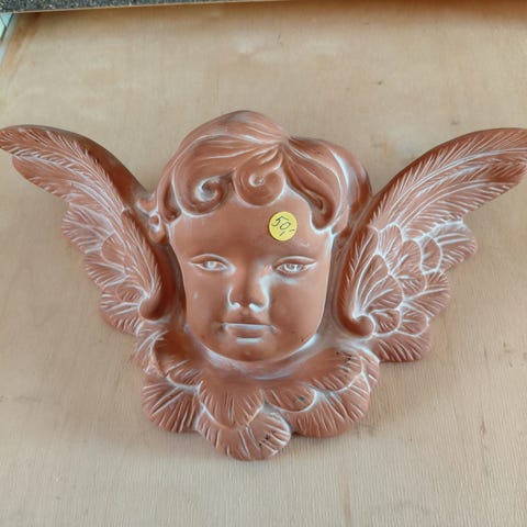 17/18cm høy. Ytterkant armer bak 14.5 cm. Vakker. .men noen små mørke flekker. ( se bilder ). Kjøper betaler porto.