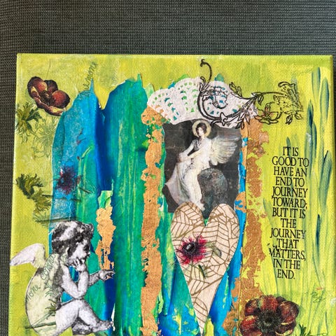 Collage på lerret. «by angel with love» Kunstverk.