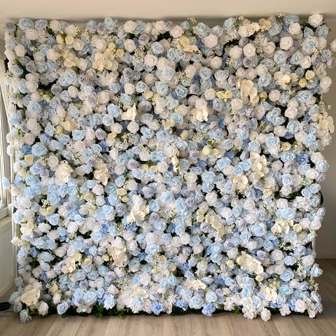 «En herlig bakgrunn med hvite blomster som passer perfekt som dekorasjon til et bryllup eller andre anledninger som forlovelser og dåp. Bakgrunnen kan for eksempel festes bak brudeparet ved festbordet, bak kakebord eller brukes som vakker bakgrunn under fotograferingen»