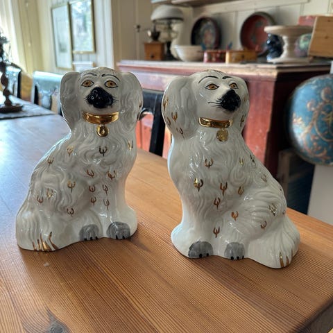 Det sies at de noen ganger ble satt i vinduet, vendt mot hverandre når mannen var hjemme, og deretter snudd slik at de vendte fra hverandre når mannen var reist på sjøen igjen.. kan sende for 69kr