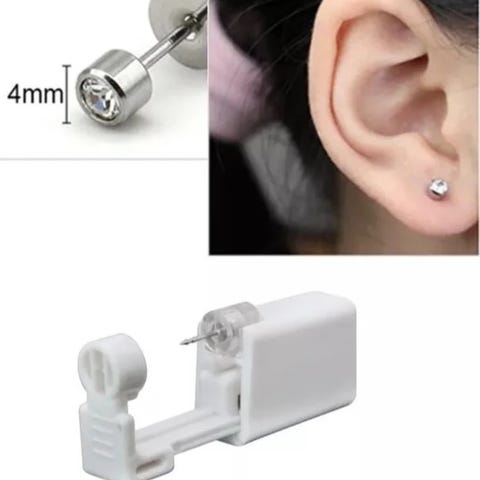 2 stk engangspistoler til å ta hull i ørene selv.