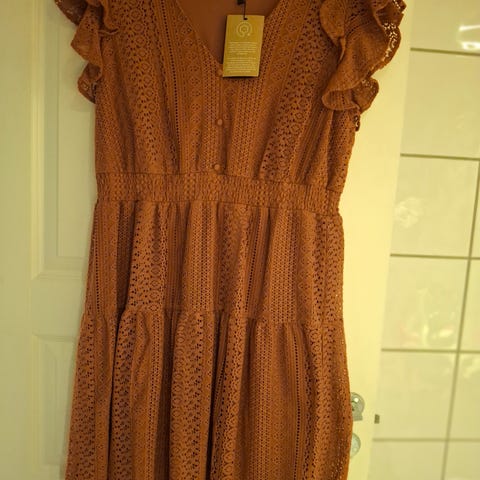 Veldig fin kjole i mosegrønt i behagelig stoff og form. Str L, romslig i størrelsen. Ubrukt. Kjøpt for noen år siden på HM.