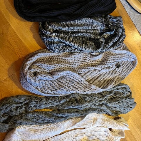 Tre skjerf selges samlet kr 90.