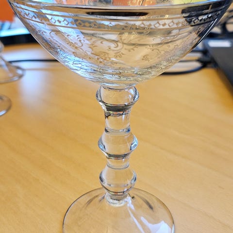 8 stk gamle Holmegård snapsglass klokkeformet h 14, cm