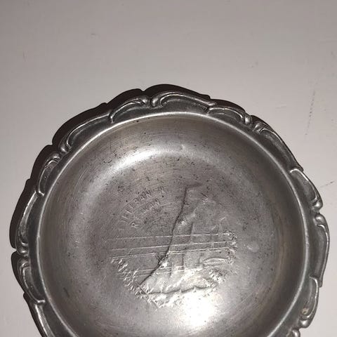 12 cm i diameter.Samleprodukt.Petterøes tobaksfabrikk ble kjøpt av Tidemann 1973.